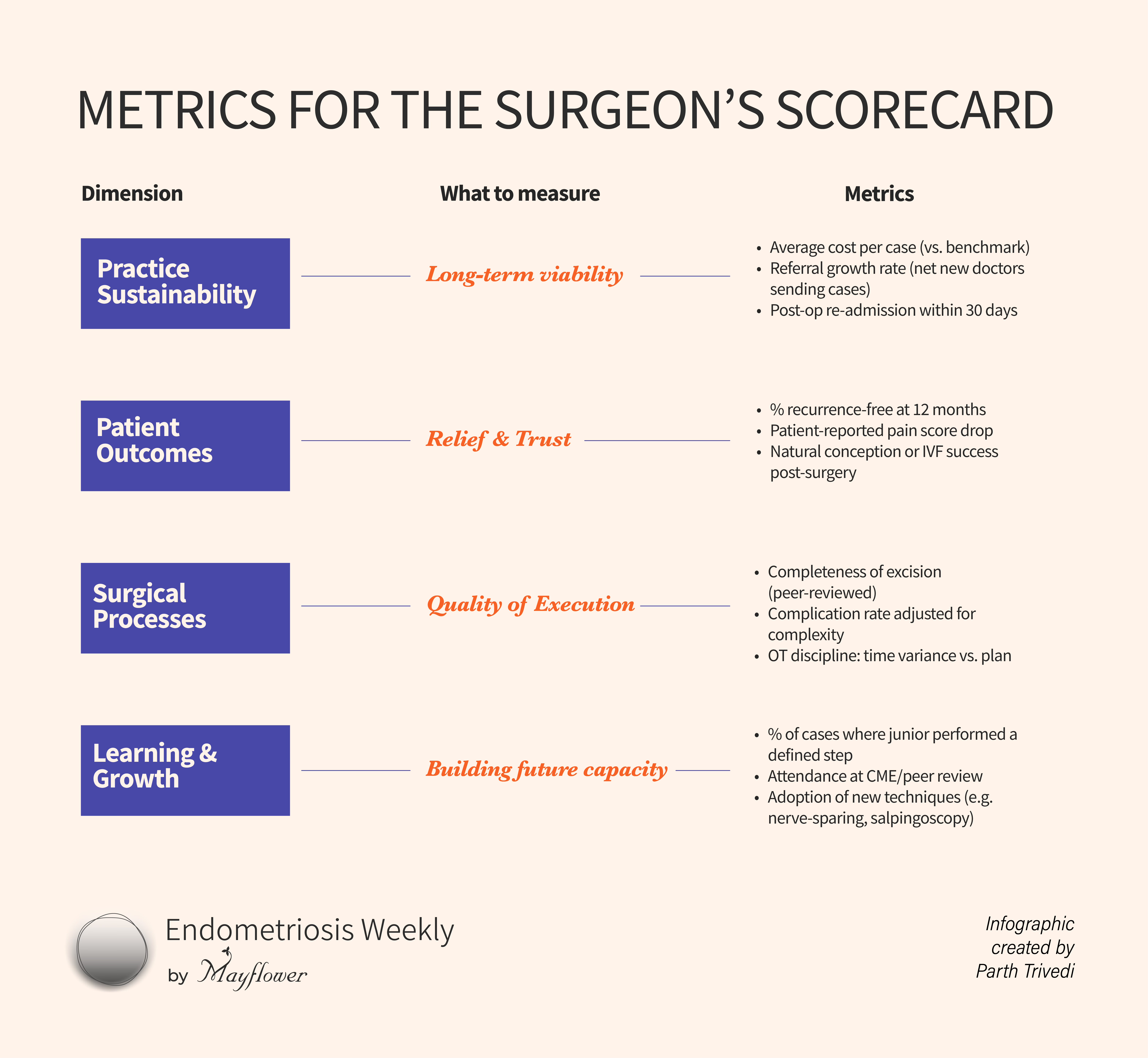 At the end of the day, this is why we operate. Did the patient’s pain improve? Did fertility return? Was recurrence avoided? But outcomes go beyond the scalpel: was counselling clear, was trust built, did the patient feel heard? A disease-free pelvis means little if the patient walks away confused or alienated.Surgical Processes (Internal Perspective)