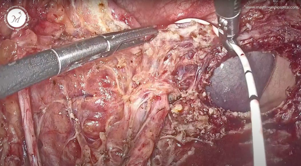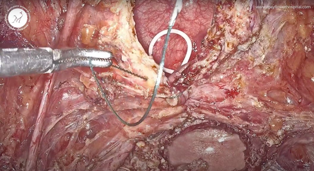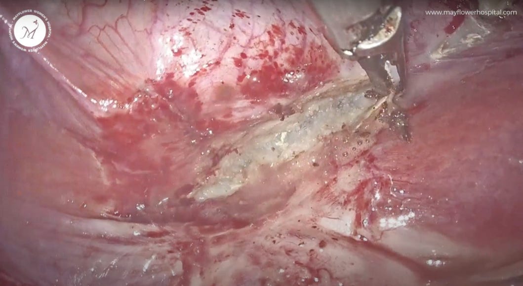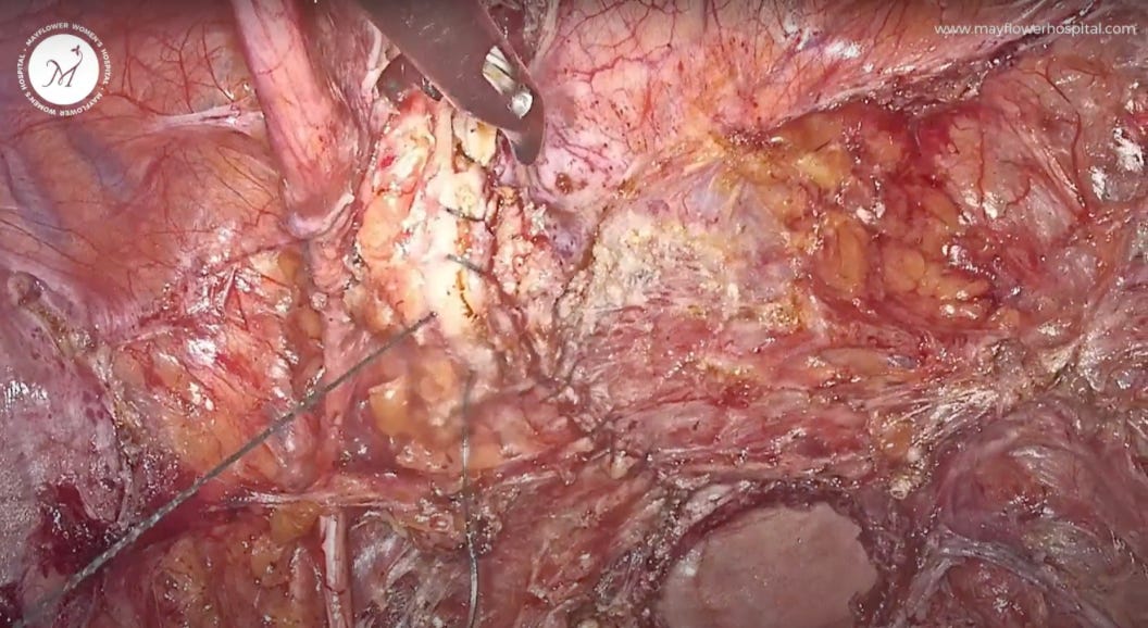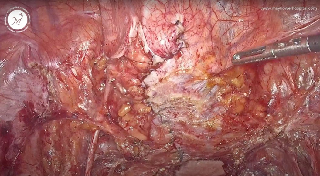 There is a combination of medial and lateral approaches, which we use to eventually focus on the spot of endometriosis buildup.