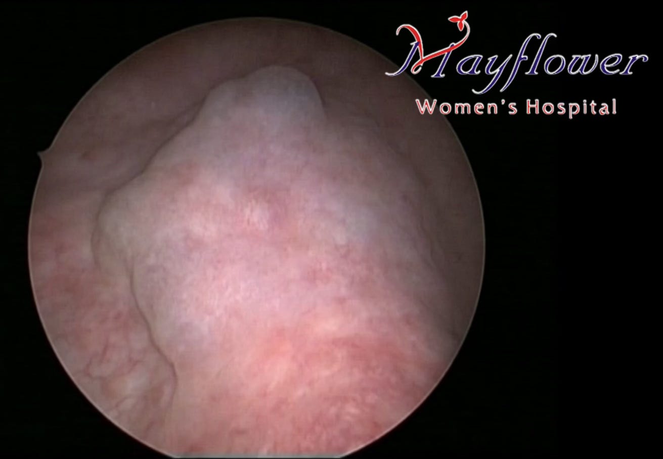 The ureteric orifice and trigone area appear normal but we can see some endometriosis plaque buildup involving the mucosa on the dome of the bladder.