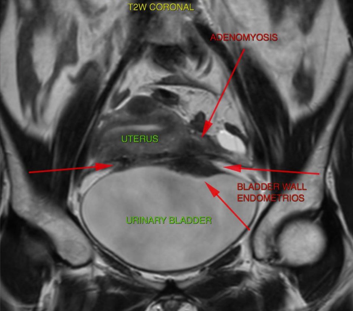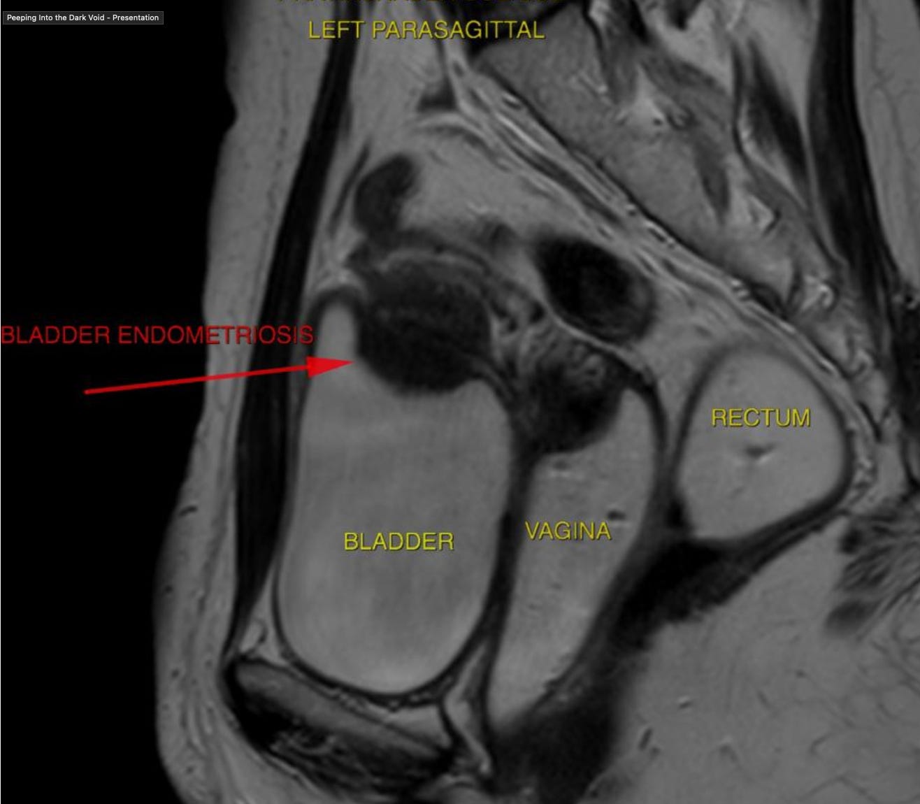 Bladder Endometriosis shows up in the anterior compartment in our MRI
