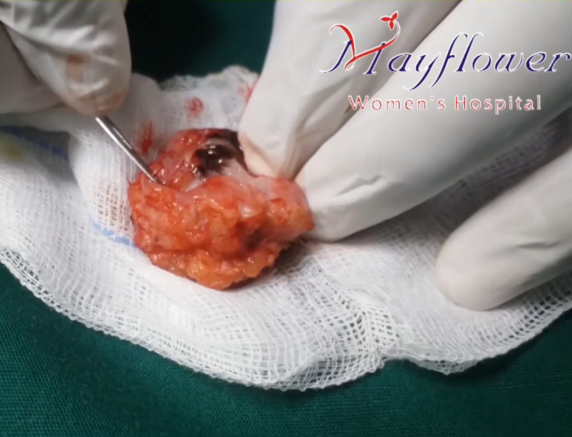 Cystoscopy told us that the ureter, its orifice and the trigone area are normal and hence we take extra care to not cause any damage to those areas. Once dissected from all sides, we excise the nodule.