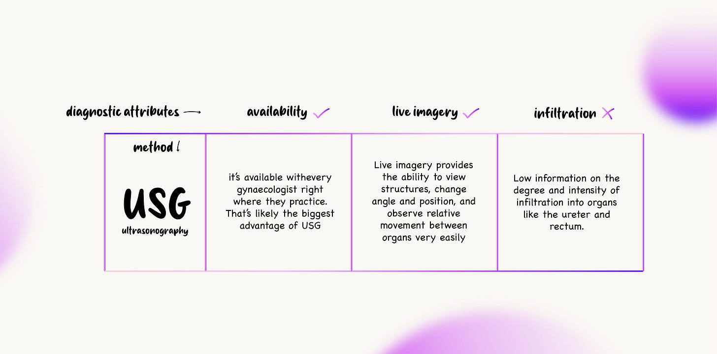 But USG can only go so far in determining the true extent of the disease. While it denotes the presence of endometriosis, it doesn’t help us accurately map the most damning feature of the disease. It’s infiltration.